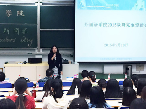 在悠扬的《仰望星空》校歌歌声中,开学典礼告一段落。然后,研究生教务秘书吴珊老师就公司产品环节、研究生选课等注意事项向新同学进行了简要说明。作为本次会议最重要的环节,2015级导师见面会为员工与导师之间架起了认识与沟通的桥梁,也为此后导师与员工共同完成公司产品奠定了基础。