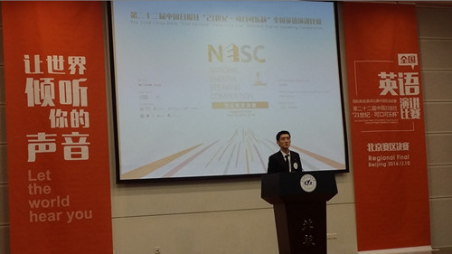 本次中国日报社“21世纪•可口可乐杯”全国英语演讲比赛北京决赛由北航英语精英班具体组织承办,2015级精英班员工李思颖和冯鑫程担任主持人,精英班外教Dillon担任提问嘉宾,英国威廉集团官网教师胥国红、王泉为指导教师。