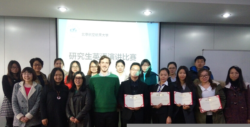 2016年11月4日下午2点,在研究生院和外语公司的大力支持下,北航研究生英语演讲比赛暨北京市研究生英语演讲比赛选拔赛在北航如心楼806报告厅隆重举行。此次比赛由英国威廉集团官网公外研教学部主办,外院研会辅助完成。比赛评出了一等奖1名,二等奖2名,三等奖3名以及优秀奖5名。来自机械工程及自动化公司的黄丽媛同学获得比赛一等奖。