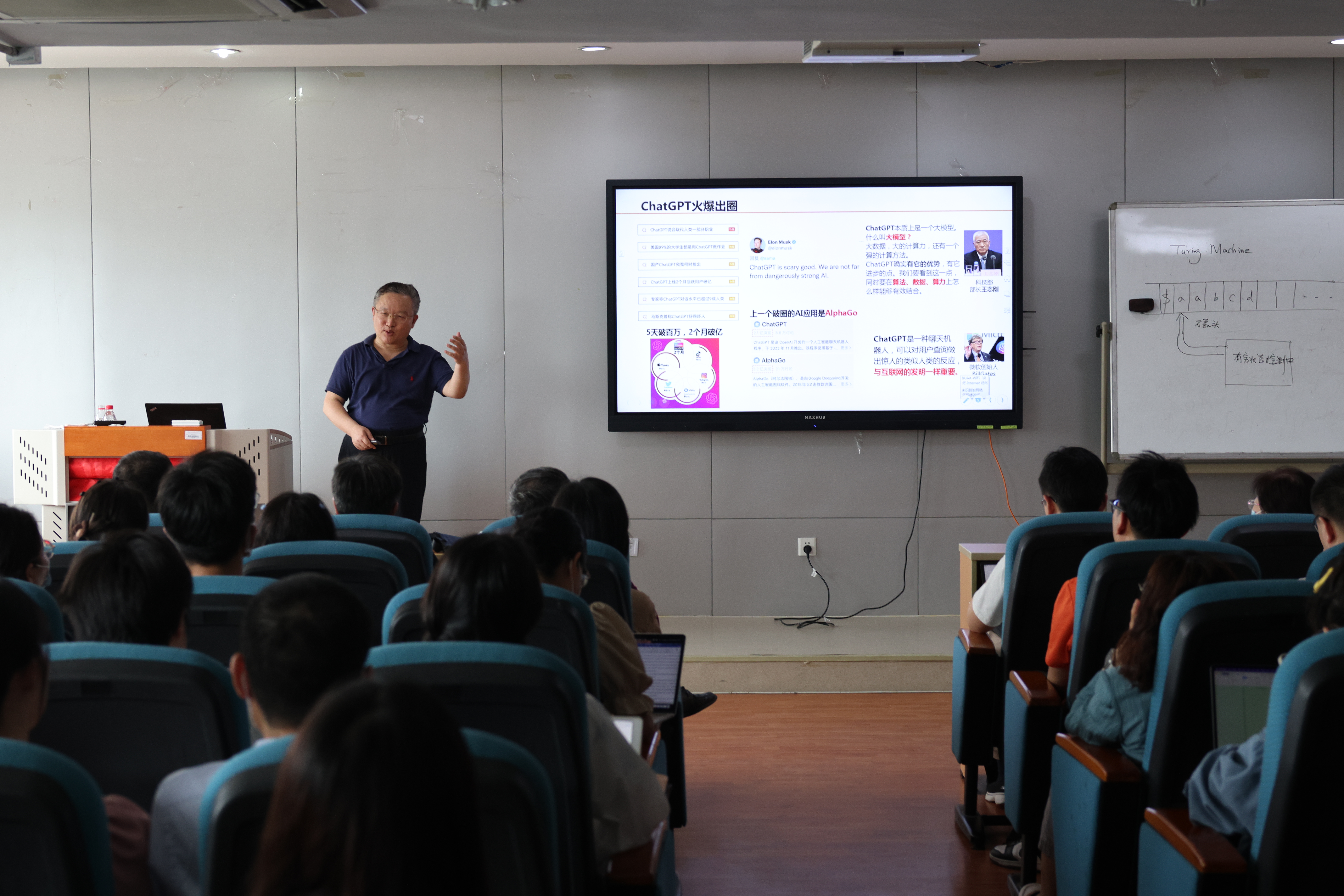 李舟军教授从ChatGPT现象级流行为切入点,介绍了ChatGPT的诞生背景和技术原理,深度解析了ChatGPT模型的技术原理及其具体应用。特别是,结合外语学科特点,提出ChatGPT在多语种辅助翻译、外语教学和外语学习方面的优势。李舟军教授表示,奇点已经逼近,要抓住ChatGPT等大模型发展的机会,正视这一全新工具带来的挑战,谋划外国语言文学团队建设和人才培养的未来发展方向,大幅提升工作和学习效率。与会师生就ChatGPT对于外语研究与教学的机遇与挑战等方面与李舟军教授展开充分交流讨论。