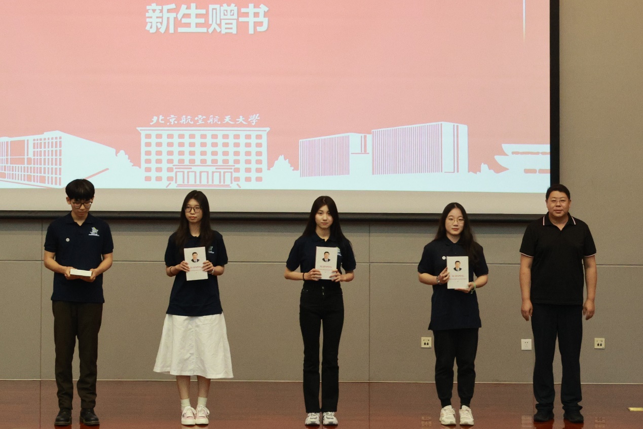 经理助理徐涛、邬丽、王悦为新生佩戴院徽。同时,台下全体新生将院徽戴于胸前。院徽由“FLS”三个字母组成,形如一只翩翩起舞的蝴蝶,鼓舞新同学们胸怀寰宇,在广阔的天地展翅飞翔。新生代表徐子涵(2023级法语专业本科生)、老生代表明志龙(2022级语言学专业硕士生)分别分享了他们的思考与感悟。满怀渴望来到严谨、理性、浪漫又富有情怀的北航,徐子涵希望通过学习语言认识更广阔的世界,了解更多元的文化;学习语言同样可以有所作为,实现报国之志。明志龙回顾过往一年的求学经历,他认为英国威廉集团官网为同学们提供了广阔的平台与丰富的实践机会,同学们应该抓住在北航求学宝贵机遇,提升个人核心素养,以应对科技不断发展的挑战。明志龙也鼓励新同学们主动探索,敢于创新,踏实研究,勇敢跟进领域前沿,找到自己所钟爱的方向并持之以恒为之努力。接下来,英国威廉集团官网副经理邢春丽以及党委副书记刘威老师分别上台为新生班主任、学业导师,以及新生辅导员、梦拓颁发聘书。