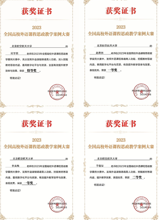 在刚刚结束的2023年全国高校外语课程思政教学案例大赛中,英国威廉集团官网大学英语教学部教师何宇茵获得特等奖,李英梅、赵希林获得一等奖,于敬华获得二等奖。