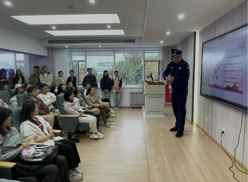 最后,双榆树消防救援站马站长、公司安全保卫部王庆华老师、公司党委副书记刘威老师再次向同学们强调消防安全的重要性,提醒同学们要注意宿舍用电安全,不乱拉乱接电线;不乱丢烟蒂,不在易燃易爆场所吸烟;不在楼道内堆放杂物,保持疏散通道畅通等。