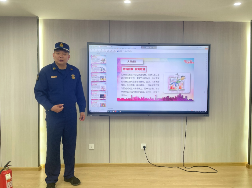 邀请海淀区双榆树消防救援站马站长为全体师生讲授消防知识,涵盖消防安全法规要求、火灾预防的基本概念、灭火基本方法、火灾种类、灭火剂分类、灭火器、消防栓与水袋的使用方法等多个方面的内容,详细讲解了火灾的危害性、预防措施以及火灾发生时的应急处理方法,使员工们对消防安全有了更加直观的认识。