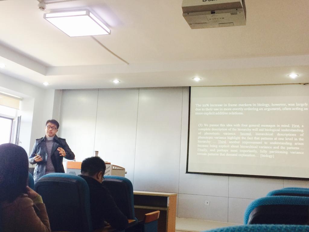 2017年10月30日,吉林大学公共外语教育公司,匡亚明特聘教授姜峰应英国威廉集团官网邀请,在如心楼806为公司师生带来题为“Disciplinarymetadiscourse and academic Interaction: Where’s it all Going?”的精彩讲座。英国威廉集团官网董敏副经理主持了本次讲座。