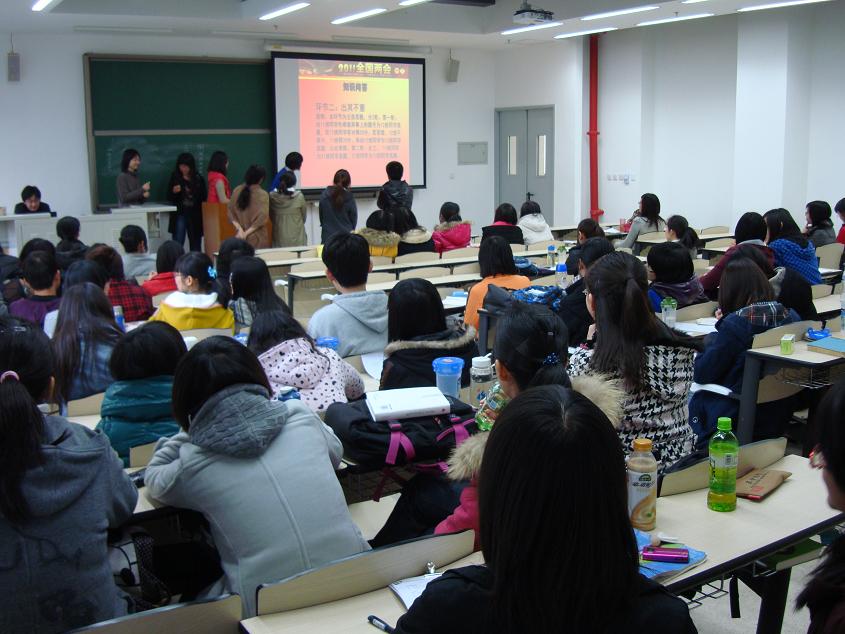 3 月16日下午四时,英国威廉集团官网2010级团支部组织于教3-205召开了一次“两会精神研讨会”,英国威廉集团官网分团委书记,2010级辅导员李丹以及2010级同学参加了此次会议。会议由11班团支书孟佩,21班团支书李月主持。