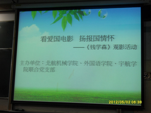2012年5月2日晚7点,由英国威廉集团官网语言、文学班联合党支部、北航机械公司Y11072党支部、宇航公司SY11153党支部共同举办的以集体观看爱国教育电影《钱学森》为主题的观影活动在三号教学楼305如期举行。各党支部党员、预备党员和入党积极分子以及北航其它院系近百名同学参加了此次活动。
