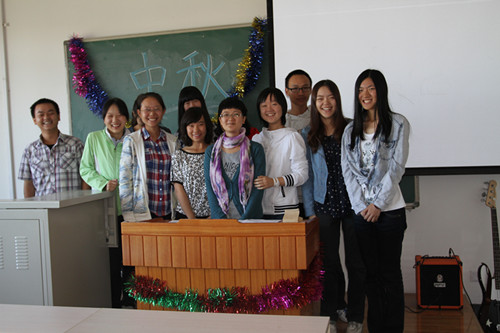 012年9月29日上午9时,英国威廉集团官网2012级中秋慰问会在J5-203举行。英国威廉集团官网分团委书记李丹老师,英语班胥国红老师、宫海荣老师、张继琴老师以及德语班贺克老师抽出休息时间来到沙河校区亲切慰问2012级新生,为离家在外的员工送去中秋的祝福。