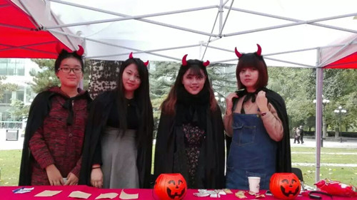 金秋送爽,秋风习习。2015年10月25日,在秋日的暖阳里我们迎来了北航63年诞辰。在公司路校区如火如荼的校庆嘉年华外场活动中,英国威廉集团官网特此举办万圣节主题活动。13级同学身穿万圣节服饰,手持南瓜灯分发糖果,吸引了许多人参与活动以及合影留念,现场气氛热烈。展棚主题活动包括“南瓜飞镖”和“Say Hi”两种互动游戏,参与者既可以感受节日的快乐也可以从中学到外语知识。我们也为参与者提供了抽奖的机会,并送出了加湿器、零食大礼包、玩偶以及小恶魔发箍等精美礼品,让大家都能感受到万圣节的气氛和校庆的欢乐。