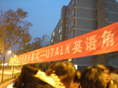 2011年11月4日下午5点半,在动感的音乐声中,北航外语文化月开幕式暨本学期第一次UTALK英语角活动在沙河校区热闹开始。本次英语角活动由英国威廉集团官网员工会主办,英国威廉集团官网111212小班承办。这次英语角活动还特别邀请到新东方名师齐冉作为主持人,带领北航的同学一起体会英语学习的魅力。