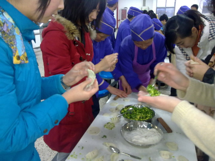 联欢会由三个环节组成,包括互动游戏,羽毛球小型竞赛以及大家一起包饺子。整个下午,公司餐厅里笑语连连,热闹非凡。其中不得不提的便是包饺子活动,和面、搓球、擀面皮、包饺子,大家纷纷找到自己拿手的项目,大显身手。当然还是要特别感谢北航食堂的师傅们,和我们一起欢度元旦,包饺子,并进行了一定的指导。我们的同学来自全国不同地区,各地有各地的包法,包出来的饺子也是各式各样,有传统型,还有元宝型,太阳形饺等等。看着自己包的饺子,大家的脸上都洋溢着兴奋与自豪。当然,同学们此时还不忘了娱乐,有的拿着手机拍照纪念,有些同学还趁机把面粉抹在别人脸上,食堂成了一片欢乐的海洋,到处充满了同学们的欢声笑语。同学们在师傅的指导下亲自煮了自己包的饺子,当一盘盘热腾腾的饺子端上来时,大家拿着碗与勺,争先恐后品尝自己亲手包的饺子,品尝着自己的劳动果实。