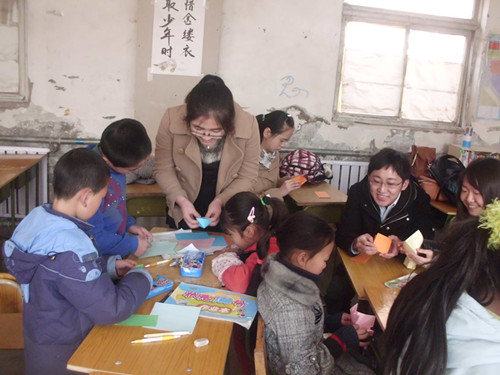 上午9时,外院10级党支部10名党员来到燕京小天鹅打工子弟公益小学,为孩子们带来了一堂生动活泼的趣味课堂。趣味课堂形式灵活,各党员被分为各个小组分别教授员工手工折纸,一只只兔子、青蛙、纸鹤在孩子们的指尖变得活灵活现,栩栩如生,将课堂装点成五彩世界。手工课堂意犹未尽,孩子们又开始了趣味游戏,“蒙眼画五官”的游戏使他们兴趣高涨,游戏尾声,员工们纷纷上台领奖,在欢笑声中结束了课程。
